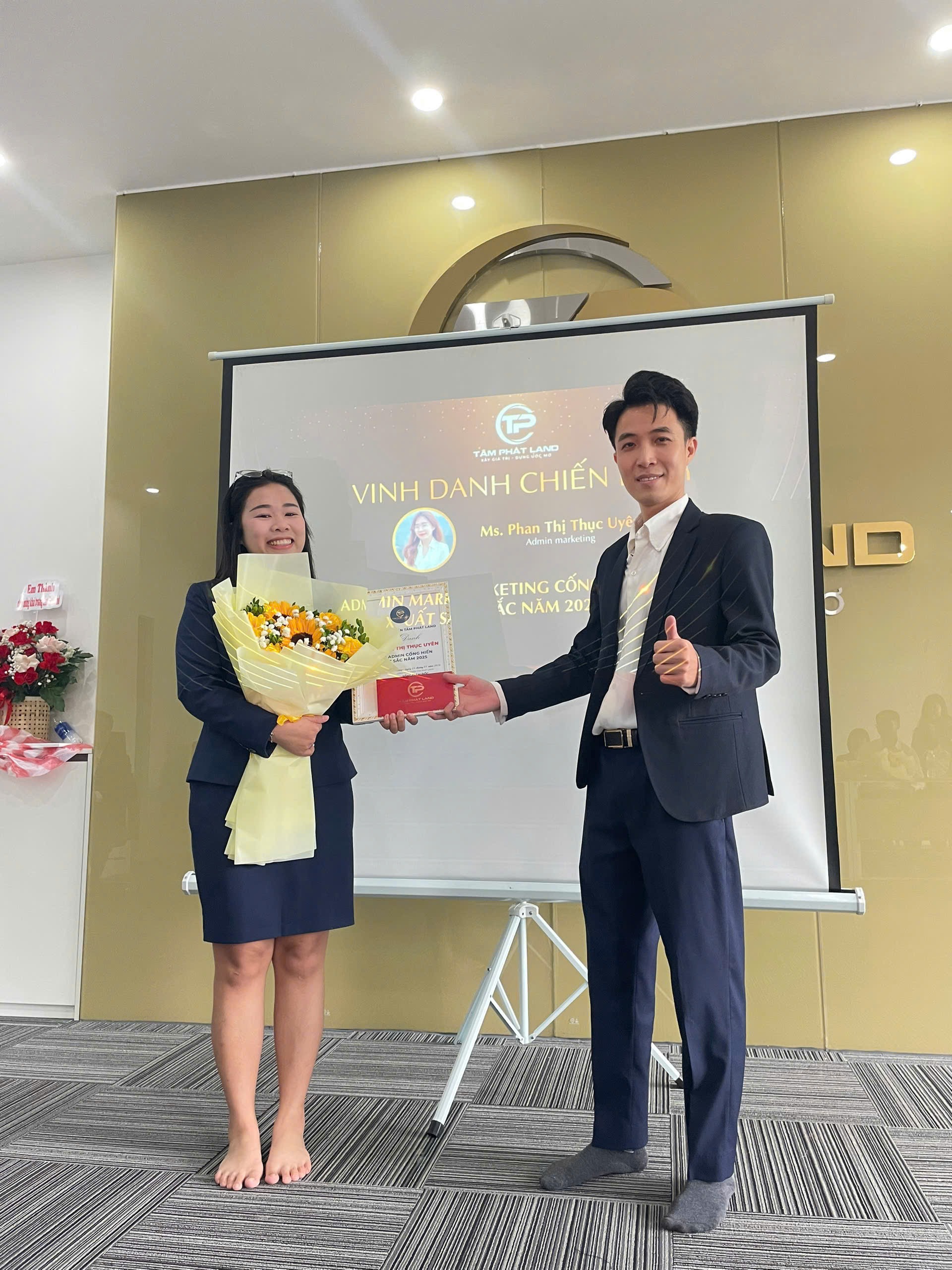 Nhìn những người đồng đội kề vai sát cánh suốt năm qua lên nhận giải, mình thấy tự hào vô cùng. Những món quà giá trị không chỉ là vật chất, mà là lời khẳng định: “Cứ nỗ lực đi, Tâm Phát Land sẽ không để bạn thiệt thòi!”